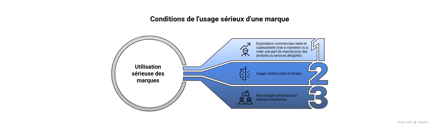 L’usage sérieux de la marque n’est pas une simple formalité, mais une obligation légale fondamentale. Le titulaire doit démontrer une exploitation effective, réelle et ininterrompue de la marque pendant une période de cinq ans après son enregistrement, sous peine d’encourir la déchéance de ses droits pour les produits ou services non exploités.