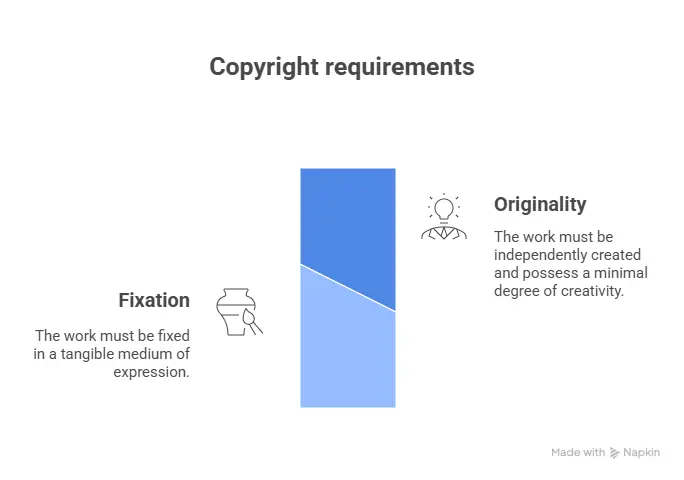- Originality: The work must be independently created and possess a minimal degree of creativity.