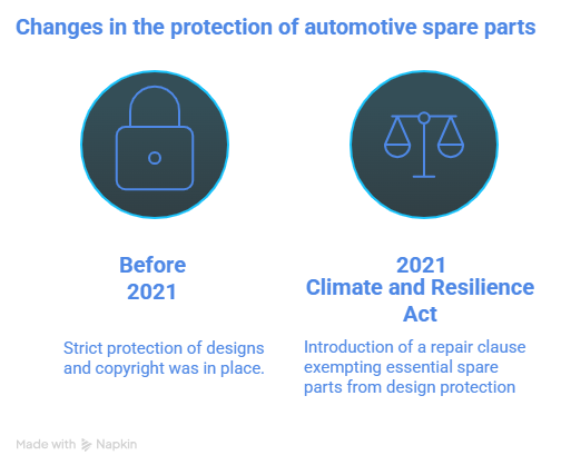 These articles enable the creation of a repair clause that exempts “essential spare parts” from design and copyright protection in order to promote competition and support the objectives of the circular economy.