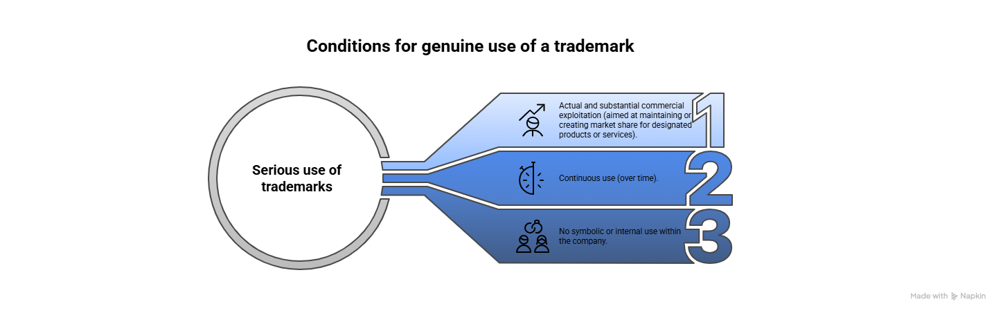 Genuine use of the trademark is not a mere formality, but a fundamental legal obligation. The owner must demonstrate effective, genuine, and uninterrupted use of the trademark for a period of five years after its registration, otherwise, protection will lapse for the goods or services for which no use has been proven.