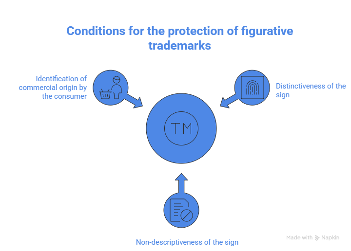 A figurative trademark encompasses any non-verbal sign composed of graphic elements: logos, icons, stylized drawings, shapes, lines, or visual combinations. Under both French law and European Union law, such signs must be distinctive, non-descriptive, and capable of identifying the commercial origin of the goods or services.