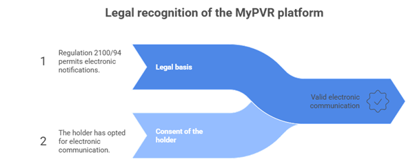 The CJEU confirms that the President of the CPVO is empowered, under Regulation 2100/94, to determine the modalities of electronic notification. Accordingly, the MyPVR system is recognised as an official and legally valid channel for the service of acts.