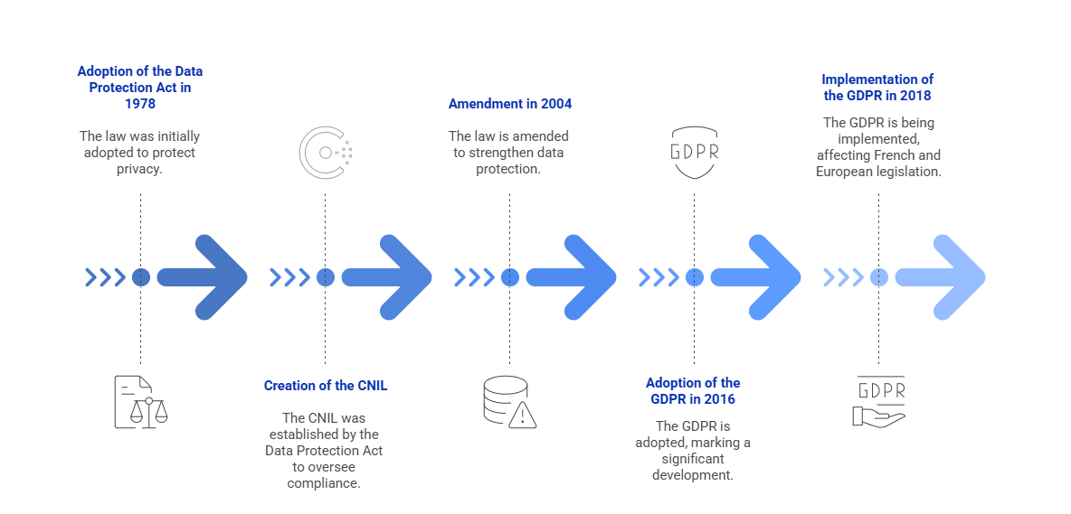 • In 2016, with the adoption of the General Data Protection Regulation (GDPR) in May, which came into effect in 2018, marking a significant evolution in both French and European legislation.