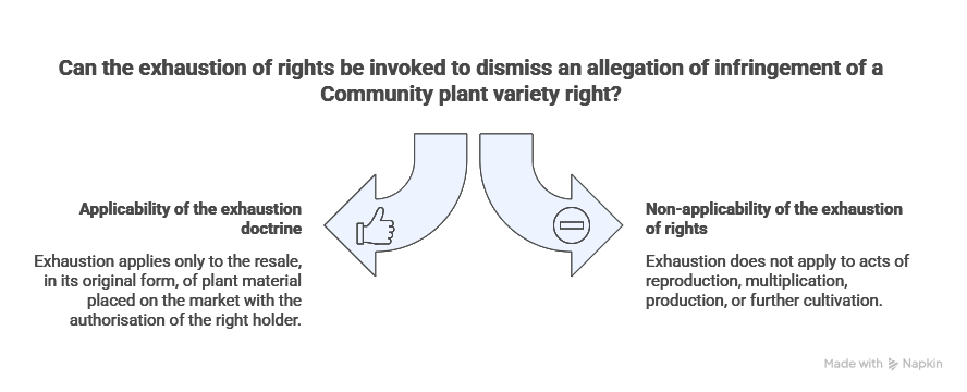 Understanding the boundary between lawful use and infringement of a Community plant variety right, as well as the limits of the exhaustion doctrine, is therefore essential in order to ensure the secure exploitation of a protected variety and to avoid litigation with potentially significant economic consequences.