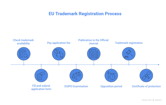 - EUIPO checks if your trademark meets legal requirements (e.g., distinctiveness)