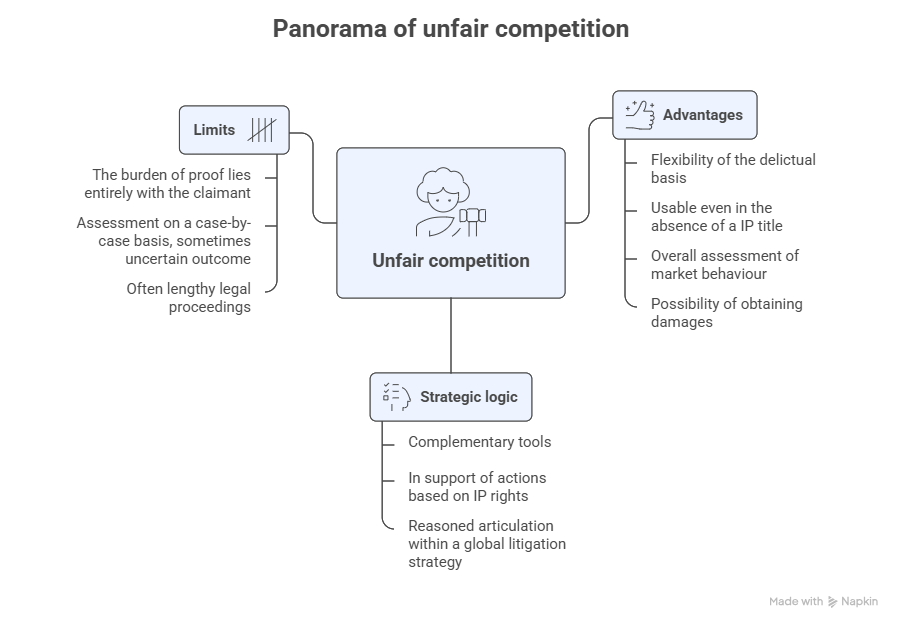 Unfair competition, based on Article 1240 of the French Civil Code, is sometimes perceived as a generalist action, whose implementation can be delicate due to the requirement to demonstrate a fault, a prejudice and a causal link.